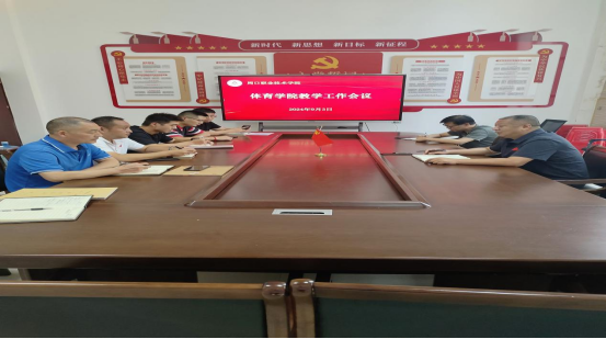 9月3日下午,体育学院召开2024-2025第一学期工作会议,旨在全面部署新学期的工作任务,进一步推动学院各项工作的深入开展。体育学院院长徐长宇、党总支书记范伟杰、副院长李海磊、宋理国出席会议并讲话,体育学院全体教研室主任及教师代表共同参会,会议由范伟杰主持。